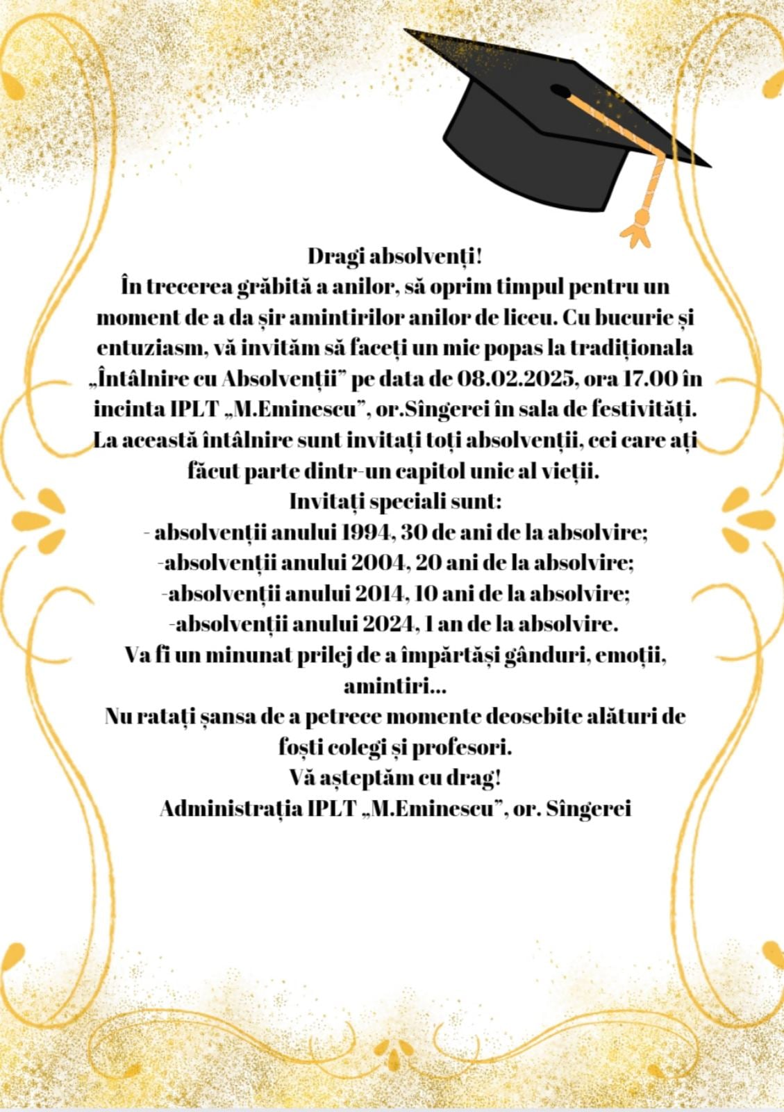 LT „Mihai Eminescu” din oraşul Sângerei Anuntă imatricularea elevilor pentru anul şcolar 2023 – 2024